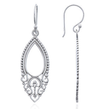 Vintage Look Filigree Beaded Teardrop Earrings, Sterling Silver