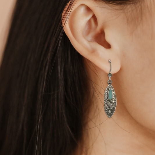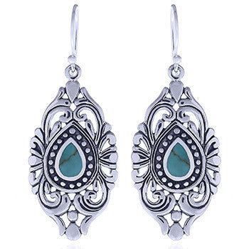 Turquoise Scroll Drop Earrings – Sterling Silver Vintage Style