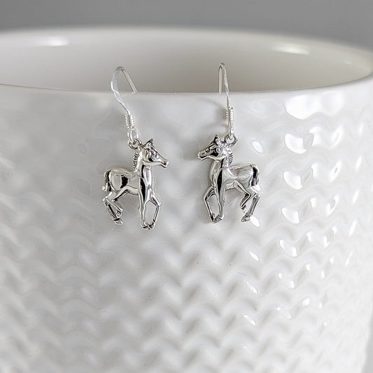 Unicorn with Flowing Mane Earrings in Sterling Silver