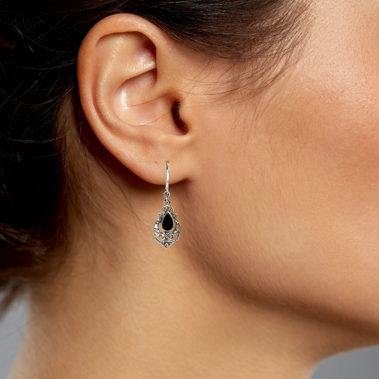 Vintage-Look Filigree Onyx Earrings, Sterling Silver