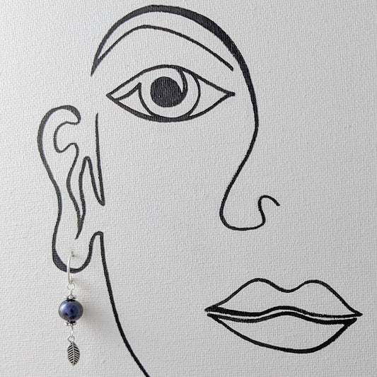 Grey Cultured Pearl with Small feather Earrings in Sterling Silver