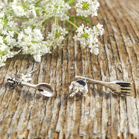 Fork and Spoon Stud Earrings in Sterling Silver