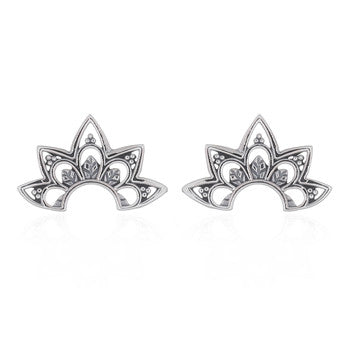 Intricate Lotus Stud Earrings in Sterling Silver