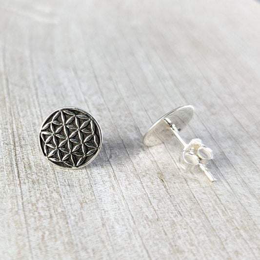 Flower of Life Stud Earrings in Sterling Silver