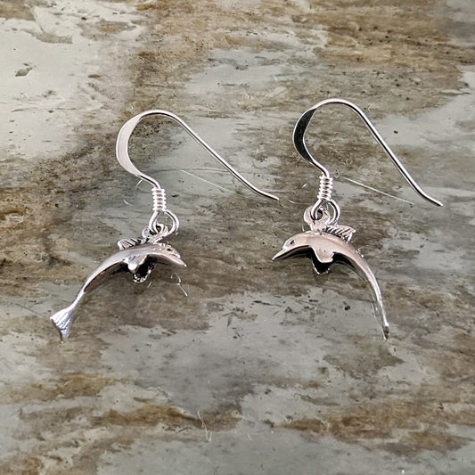 Jumping Dolphin Earrings, Sterling Silver