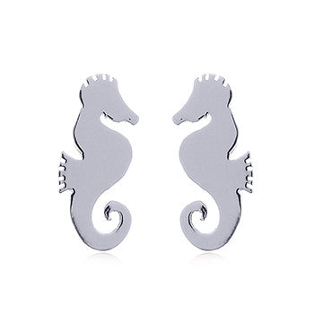 Shiny Seahorse Stud Earrings in Sterling Silver