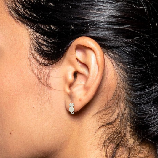 Sterling Silver Cat Silhouette Stud Earrings – Matte Finish