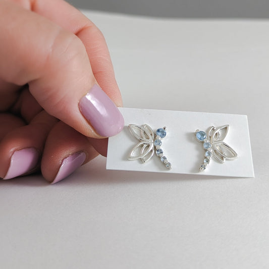 Sparkling Blue Dragonfly Stud Earrings in Sterling Silver