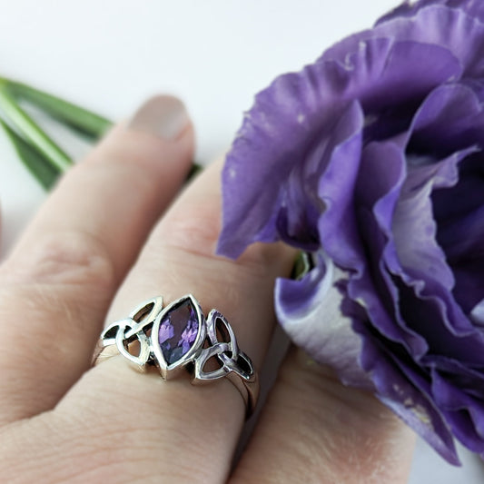 Trinity Knot & Marquise Amethyst Ring in Sterling Silver
