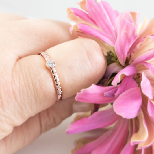 Textured Band with Small Zircon Accent in Rose Gold Plated Sterling Silver