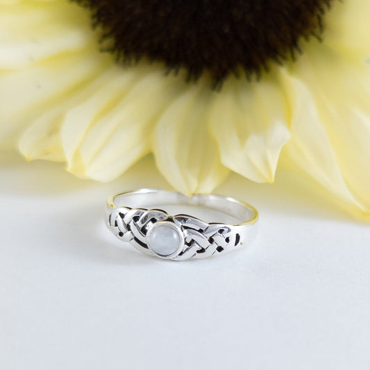 Celtic Knot Ring with Moonstone Centre in Sterling Silver