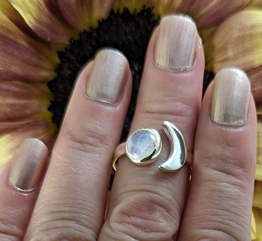 Moonstone & Crescent Moon Ring in Sterling Silver