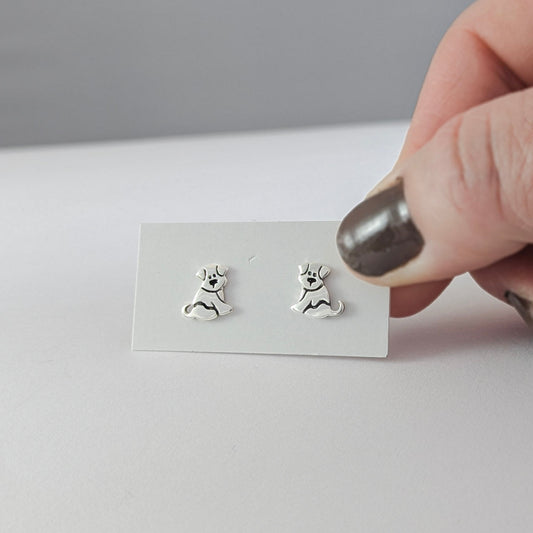 Sit Puppy Sit Post Earrings in Sterling Silver