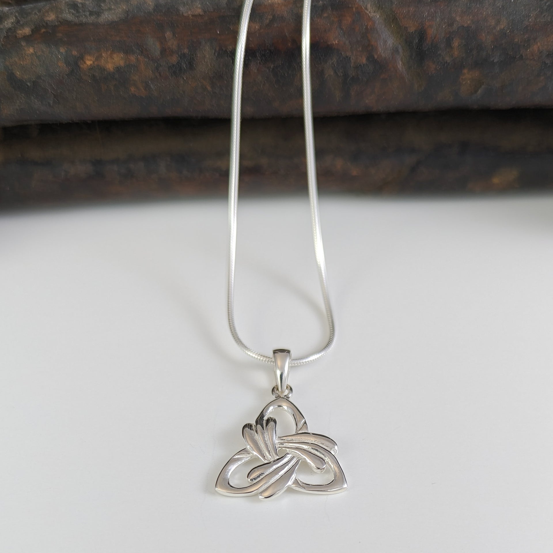 This elegant necklace features a timeless Celtic symbol in sterling silver.